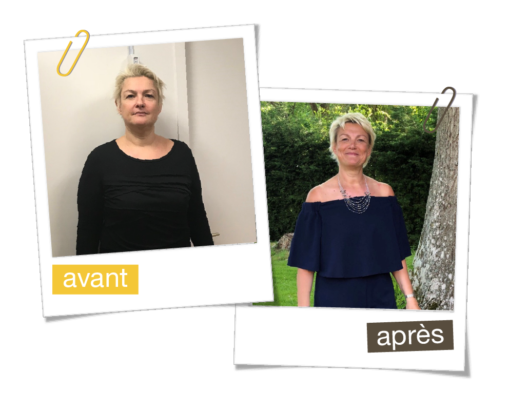J’ai eu avec la coach une première rencontre agréable, franche et sincère. Ensuite, je n’ai pas eu l’impression de faire un régime ! J’ai mangé de tout, même si au départ on retire certains aliments. Je ne me suis jamais sentie frustrée. Mon plaisir, c’est de boire un verre de vin entre amis : j’ai toujours pu le maintenir sans que cela ne m’empêche de perdre du poids.