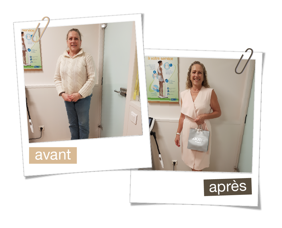 Je continue à aller voir Sabine régulièrement, avec grand plaisir. Après les Fêtes, j'avais accumulé un petit kilo qui ne voulait pas partir. On en a discuté, elle m'a dit : "Tu vas y arriver !" Et en effet, un petit effort et j'y suis parvenue. Mais j'avais besoin de son soutien !